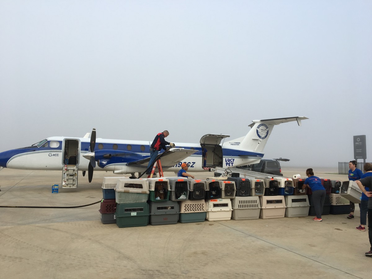 A flight of 80 pets that survived Hurricane Harvey touched down in Portland on Friday, October 13, helping to relieve the pressure on flood-ravaged shelters in areas hit by the hurricane. The Oregon Humane Society, along with the Lucy Pet Foundation, chartered the flight when they heard the SPCA of Brazoria County (SPCA-BC) in Texas was in urgent need of help.