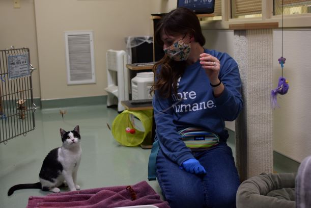 Cats also benefit from training to help them overcome their fears. “Teaching a cat to target something using their paw or nose is a great way to provide enrichment for cats.” says Deborah Fitzgerrel, Cat BMod Program Specialist.