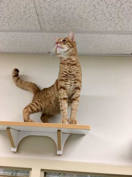 Creating an enriching environment is key to helping pets build resilience by giving them the chance to be curious. Small, frequent changes like a new blanket or bed helps the BMod dogs at OHS engage their brain while exploring the new things in their environment. Cats are more territorial than dogs so giving them a spot to hide, perch or rub is important for their enrichment. Keeping cats indoors is the safest option so it’s important that they have window perches and a chance to look at something that is dynamic and changes frequently. The cats in the BMod program at OHS have tablets with bird videos and other scenes that resemble a window to a yard. They also have a variety of perches and furniture, donated by Square Cat Habitat, to keep their minds and bodies active.