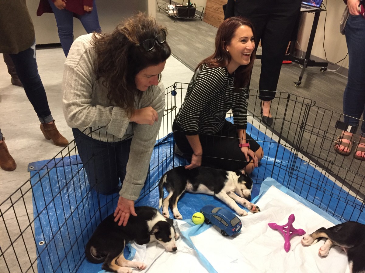 As they grew, their personalities started to blossom. They were social, happy puppies and ready for adoption. But first, they were part of the OHS Snuggle Express. They visited local businesses that support OHS to spread joy and a few sloppy kisses during the holiday season.