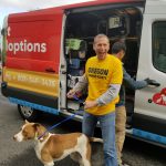 From the moment we met Bumble we knew he was unique. He emerged from the long ride from the shelter in Santa Barbara with OHS chief operating officer Brian August with a mile-wide smile and eager to greet everyone. Bumble’s connection to the Oregon Humane Society began during the historic wildfires in California in late 2017. Santa Barbara Animal Services reached out to OHS for assistance and Brian deployed to help with relocation and logistics. Bumble and more than 20 other dogs were already waiting for a home so Brian drove them to OHS in an effort to clear shelter space for pets of people affected by the disaster.