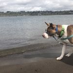 Giving Bumble an outlet for his energy was also extremely helpful. First, he joined the OHS running team, logging the miles with OHS volunteer John Franko on the Marine Drive path. Next, Bumble joined playgroups with other dogs. It was a delicate process to find the right playmates with similar energy. Jessica noticed a huge difference in his stress level after Bumble started participating in playgroup. “He got over the hurdle of being afraid of other dogs and realized that they could be fun playmates.”