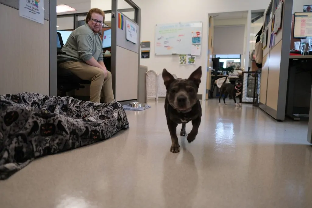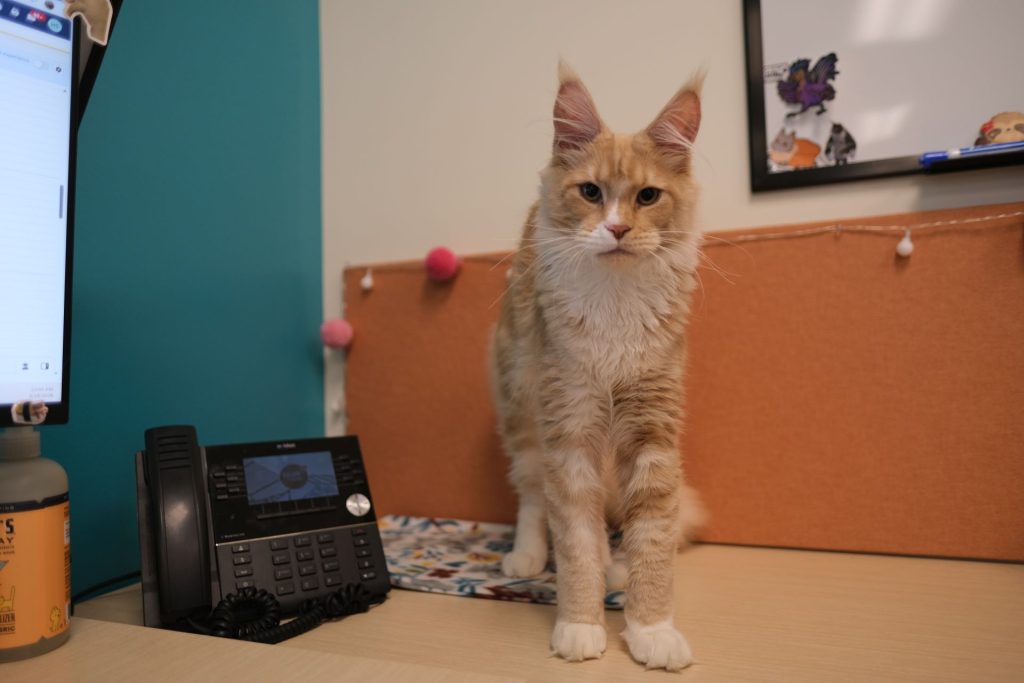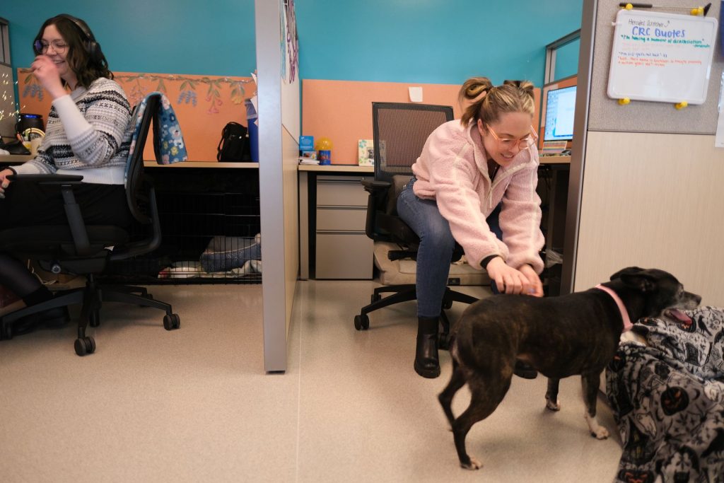 To keep things grounded, the CRC office is an intentionally cozy space, filled with staff pets—often cats—and heartwarming animal videos that play on rotation on a large screen to keep spirits up.