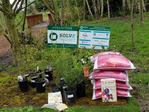 Thank you to SOLVE for their $100 grant to buy salal plants, as well as donating 10 utility buckets and trash bags. Thank you also to Portland Nursery for their donation of blueberry, ceanothus and ocean spray plants, soil amendments and mulch. An anonymous donor gave wildflower and dog-grass seeds.