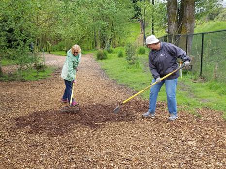 On Friday and Saturday, April 21-22, OHS welcomed volunteers from US Bank and SOLVE for some special Earth Day projects. Group volunteers like these make a major difference for the shelter by helping to maintain the dog-walking path and natural area behind the shelter building on NE Columbia Blvd.