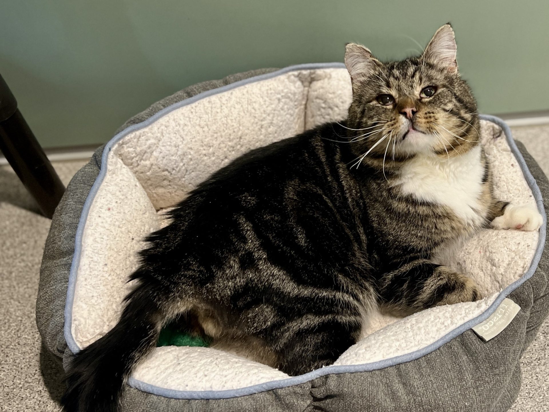 Donor support enabled Boris to get the care he needed—which included corrective surgery for entropion, a painful condition where the eyelid turns inward. After receiving top-tier care, Boris found a new loving home and became a beloved indoor cat and resident snuggler.