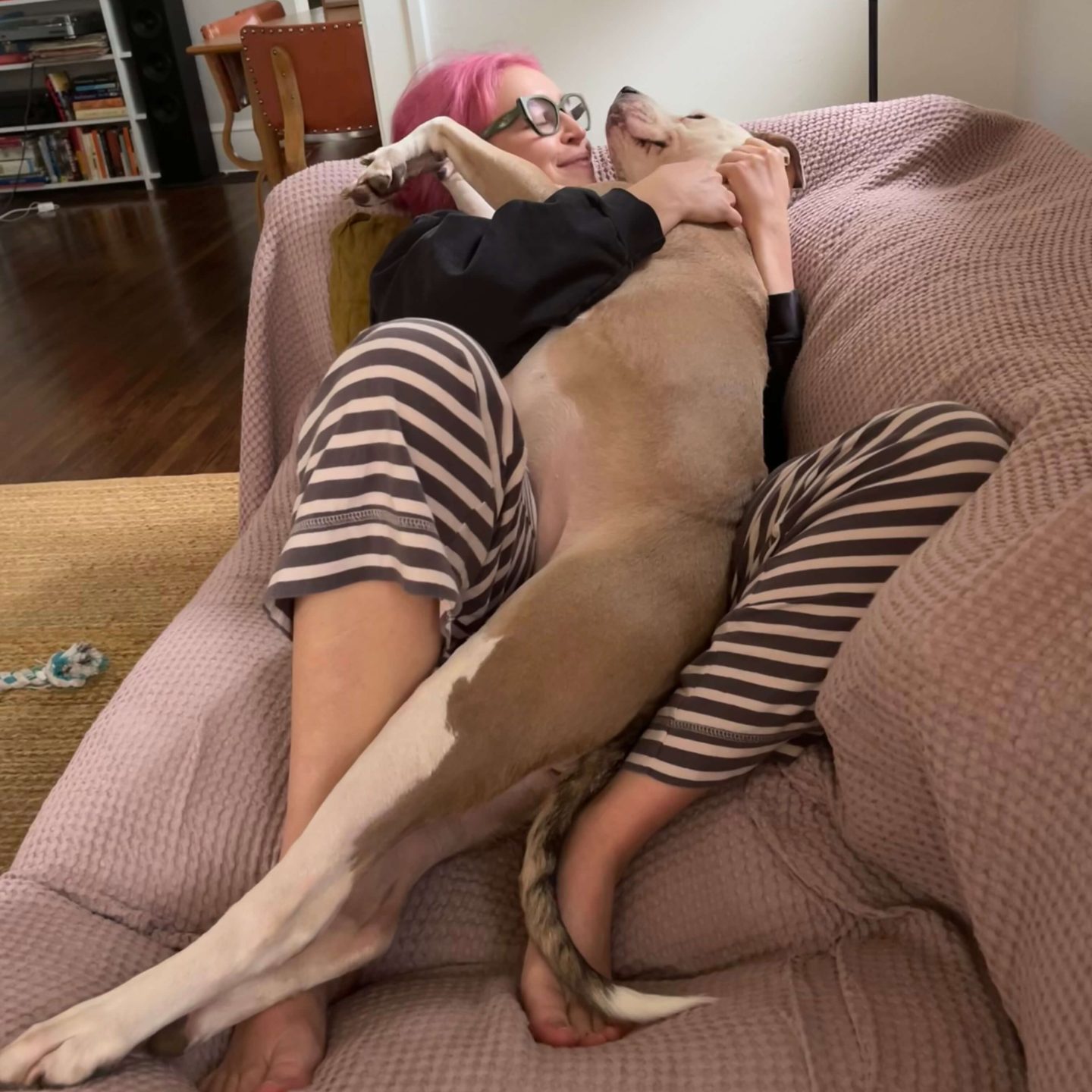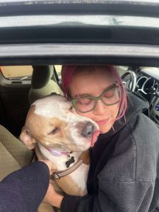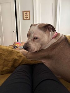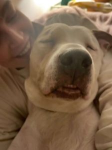 “Sunny is absolutely a delight; I love her dearly and am so thankful for OHS for taking care of her until we found each other. She is so sweet to other humans and guests and is quite popular with my friends and neighbors. While I work, she rests by my feet in her bed, and I let her sleep under my covers every night for snuggles.” says Charlotte.