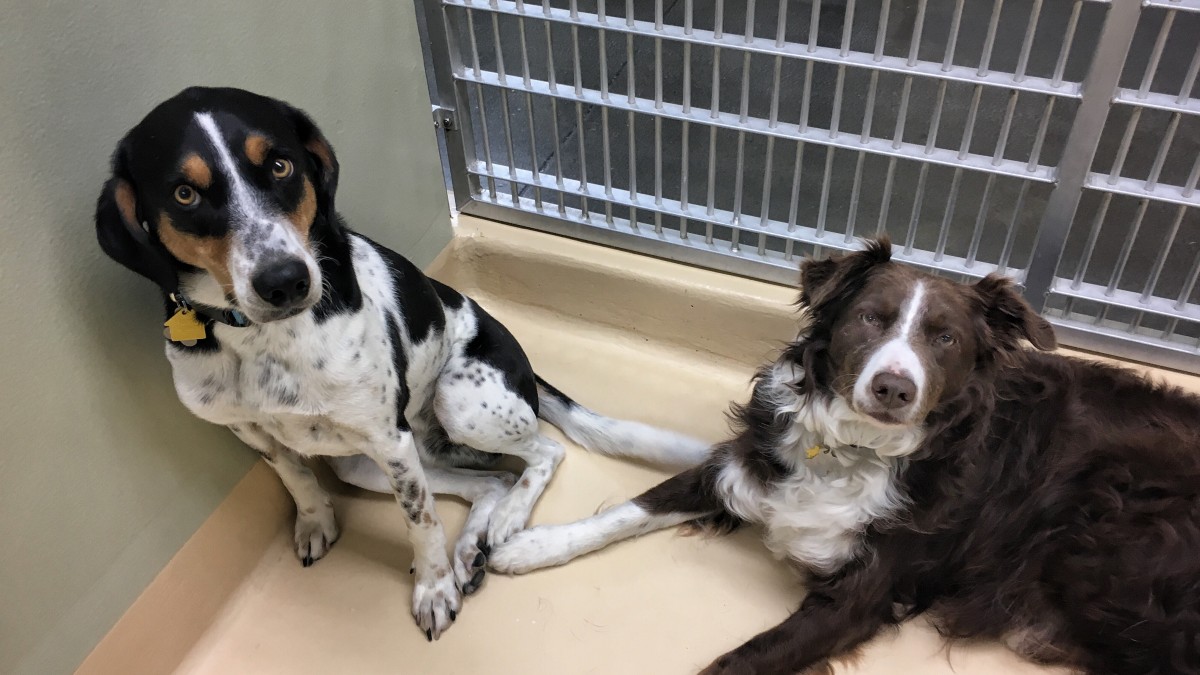 Ollie and Rusty were greeted with open arms at the OHS shelter, where they were assessed and settled into a large, shared kennel. Predictably, many prospective adopters soon showed an interest in Ollie, while Rusty, the over-zealous herder, was a bit less popular. In accordance with Shirley’s wishes, though, they were offered only as a bonded pair.
