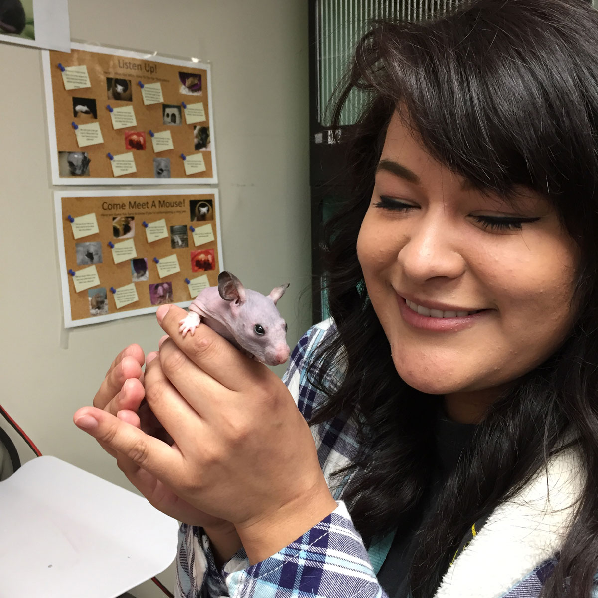 When OHS Animal Care Technician Selene Mejia saw Silky huddled in the corner of her cage, she felt bad for the little hamster, and decided she had to do something about it. She crocheted a tiny sweater for Silky, sized just right to help her stay cozy.