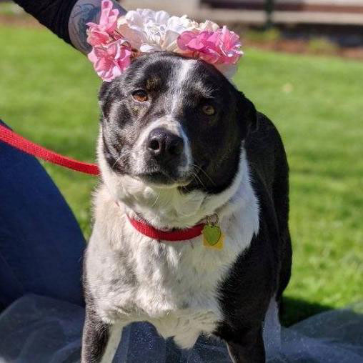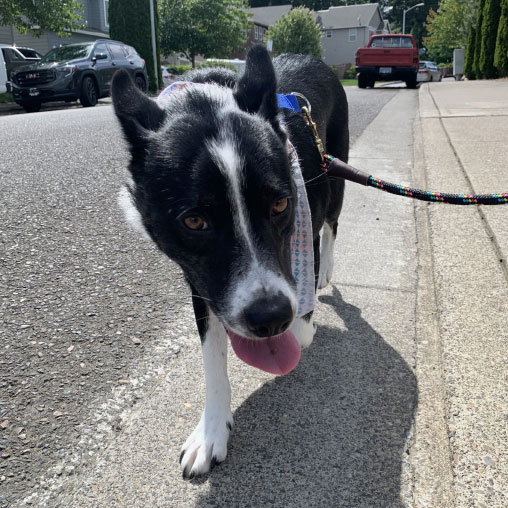 Lottie came to OHS on a Second Chance transport from Klamath Falls. She spent much of her early life left outside, leaving her fearful and distrusting. When Lottie arrived at OHS, it was discovered that she was pregnant, so she was sent to a foster home to give birth and learn to trust again. After several months in foster care, Lottie slowly began to warm up to people, but never fully — until she met her forever family, the Chitwoods.