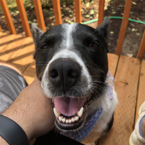 “She has been AMAZING! She settled into our home so quickly, and has been a lover from the moment she got into our Jeep. She has met many different friends and family, and has warmed up to everyone so well. We tell everyone to give her time to sniff them before they try to pet her. She doesn’t need more than a few seconds to decide she wants pets from them. In fact, there isn’t many times during the day that she doesn’t want pets!