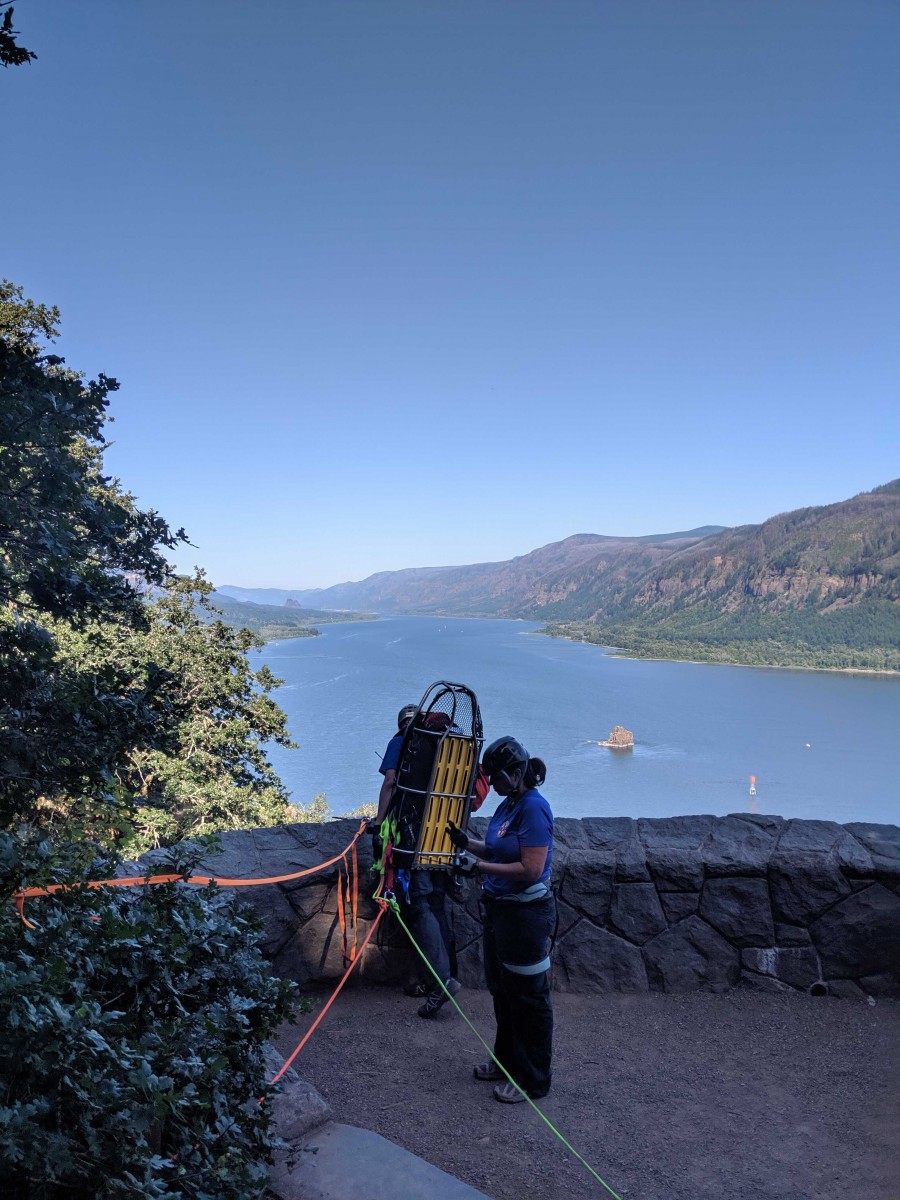 The Oregon Humane Society Technical Animal Rescue Team (OHSTAR) was called out this past weekend to help with a recovery effort at Cape Horn in Washougal. What started as a day of hiking in the Columbia River Gorge, ended in tragedy for one family. At the summit, surrounded by a two-foot wall, the family’s dog leapt over the edge and fell approximately 60 feet.