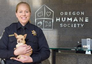 Cogswell has been a patrol officer with Portland Police for the past three years, serving the community in a variety of ways. Prior to joining Portland Police, Katie served with the Coast Guard in Astoria and was an officer with the Department of Veterans Affairs Police. In her work as a police officer, Katie often saw animal issues when she was responding to human calls. “There is absolutely a need for OHS Humane Special Agents in the community,” says Cogswell.