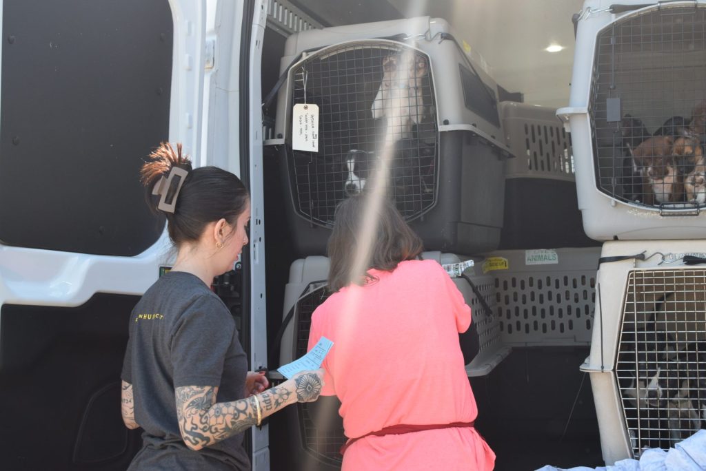 Once we return with our new arrivals, the unloading and intake process begins right away. A group of longstanding and specially trained Second Chance volunteers are on site as soon as the vans arrive to assist with the entire process.