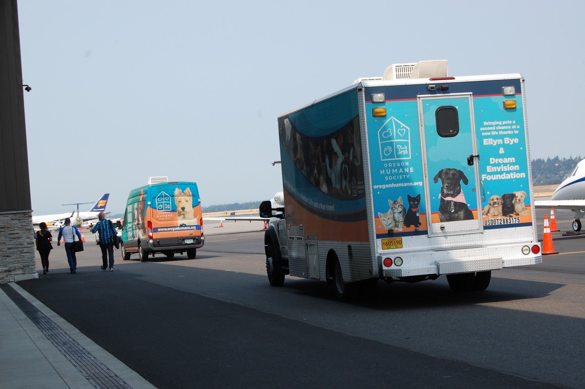 On transport day, the flight was right on time. The OHS team and transport vehicles assembled on the tarmac to meet the plane, piloted by Wings of Rescue. The 126 cats and kittens were welcomed to their new state then transferred from the plane to OHS vehicles in less than 15 minutes.