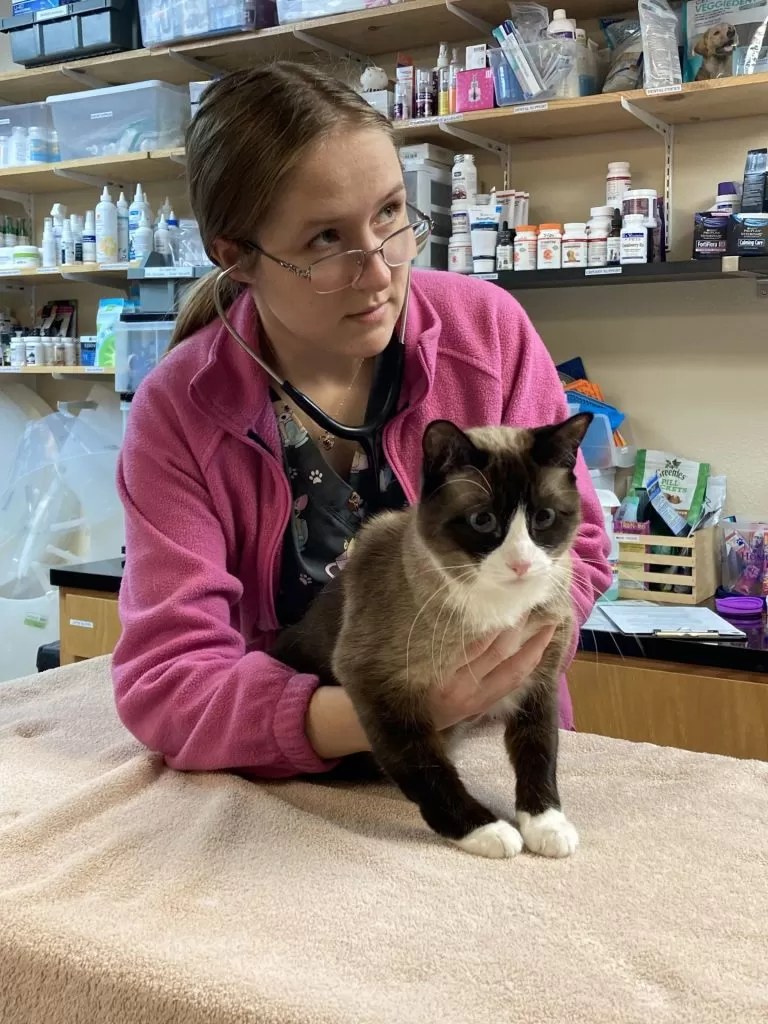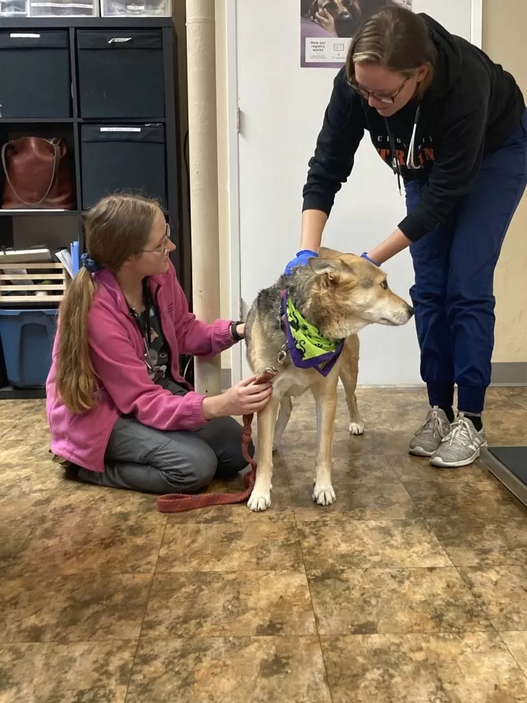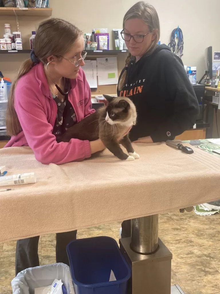 This afternoon the OSU students are Janine and Jenna. They have back-to-back appointments to provide routine wellness exams and check the overall health of each pet under the gentle guidance of Dr. Miller.