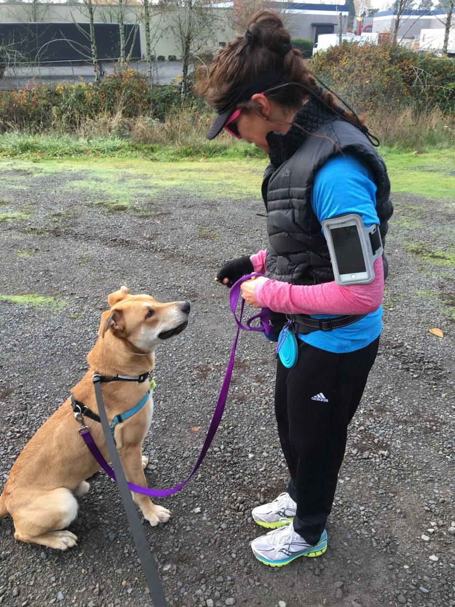 The OHS Behavior and Training Department oversees the running volunteers and provides assessments of the dogs prior to their first run. Nica’s strong prey drive and tendency to nip when she was excited and frustrated didn’t deter Karen. In addition to exercise, Karen also planned to help Nica with her basic manners like “sit,” “wait” and “leave it.”