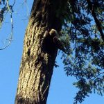 The hawk had one of its legs caught in a very narrow crevice in the tree, a crevice which was the bottom part of a larger hole. Its foot was stuck on the inside the narrow crevice, but was not injured. It seemed an easy task to lift the hawk’s leg up the crevice to the hole opening and then it would be free.