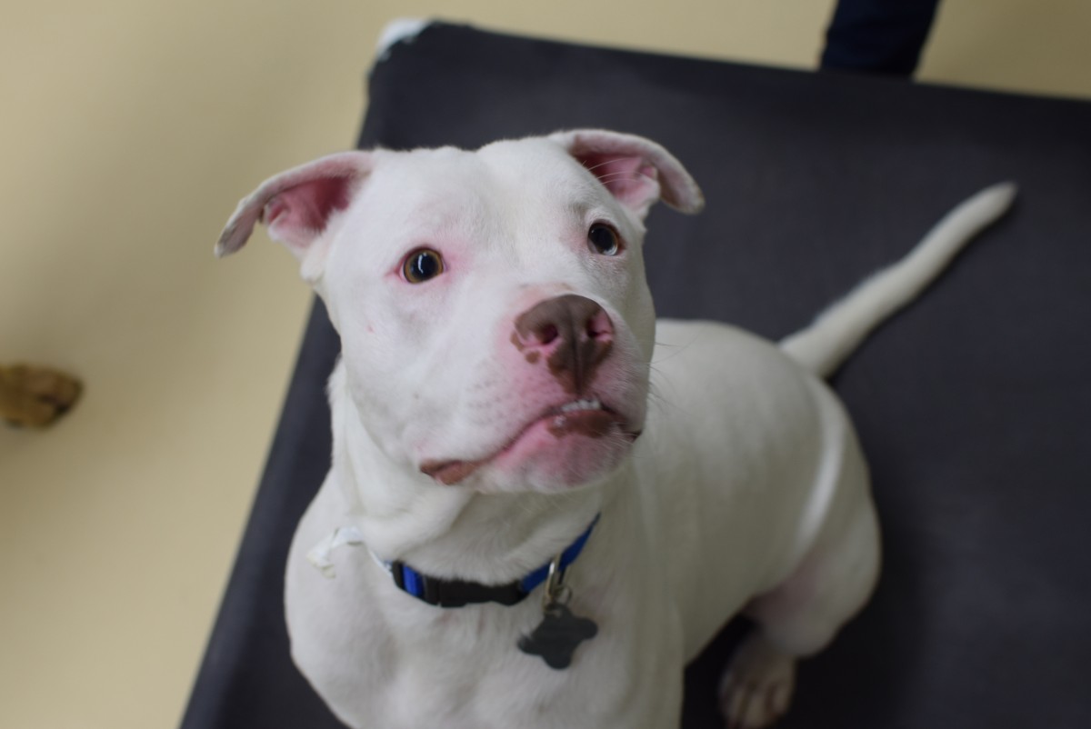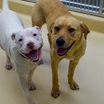 Radar was brought in by his owner who was no longer able to care for him. This young handsome pitbull-type dog, with the endearing under bite, was bouncy and happy, but deaf. Tina, a lab mix, was picked up as a stray and had a deep, lost look in her eyes.