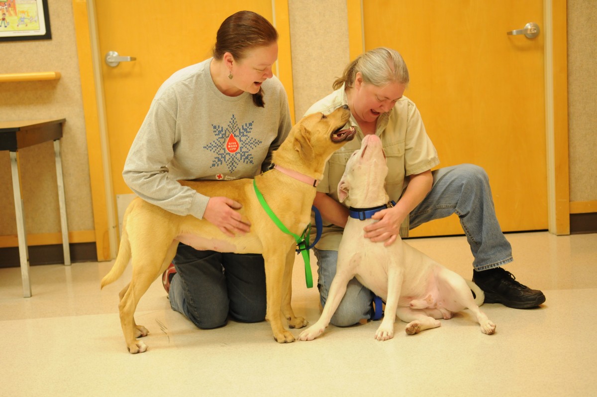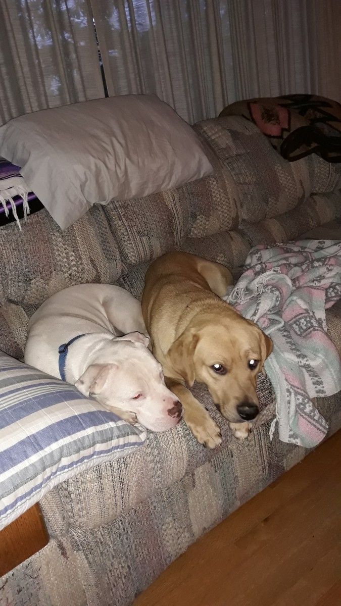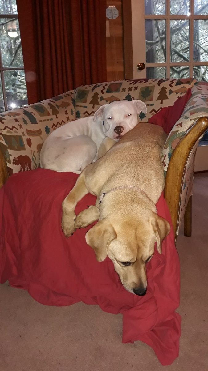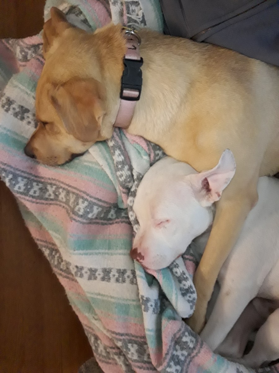 The two dogs were a bit of an odd couple, but they had a unique bond that was evident as soon as they arrived at OHS. Radar, the deaf pitbull, and Tina, the sensitive lab mix, met in a shelter in Oklahoma and quickly became inseparable. They seemed to find a purpose with each other as Tina would guide Radar and Radar would comfort Tina.