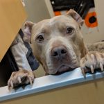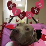 The halls of the Oregon Humane Society were full of love, kisses and laughter on Valentine’s Day thanks to a very special visit by OHS alum Santo and his “mobile kissing booth.” This three-year-old gentle giant was adopted by Tamara deLine, outpatient services supervisor, a little more than a year ago after she was instantly drawn to his mellow demeanor and eagerness to please. Santo was picked up as a stray and taken to a shelter in rural Washington state. He was transferred to the Oregon Humane Society through its Second Chance program.
