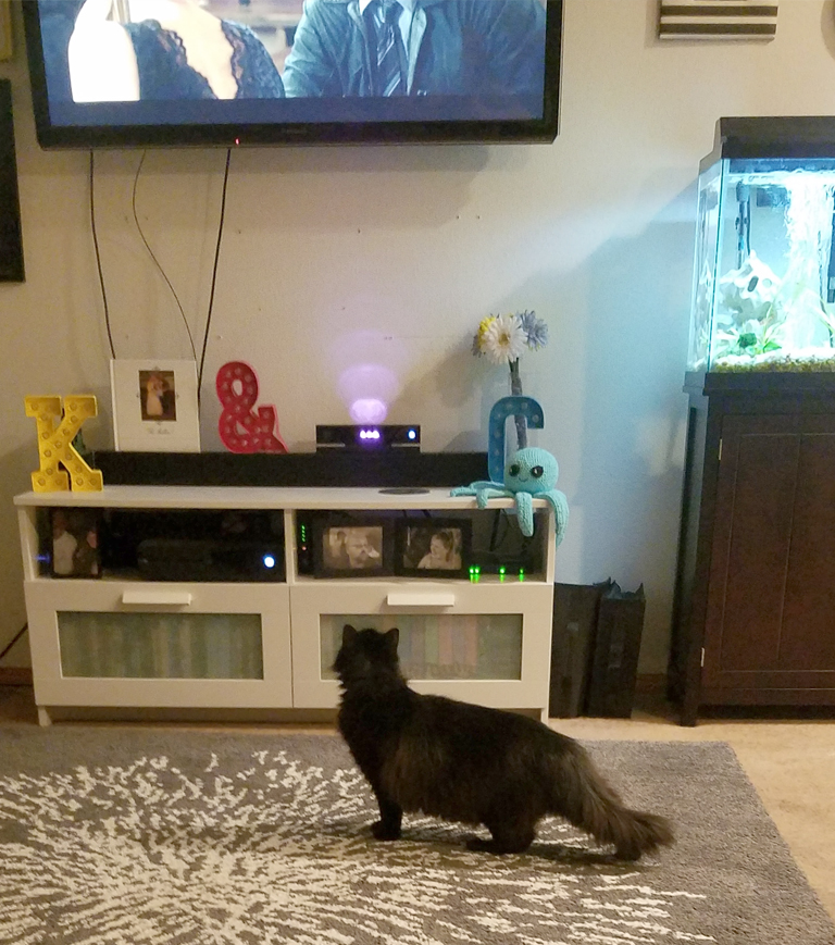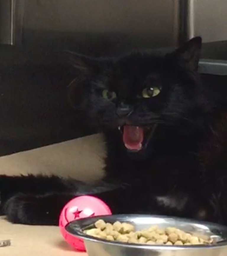 Our behavior team was quickly alerted and asked to intervene. Behavior experts moved Schumer to a calm, quiet room and started to teach her how to trust people. By using treats and toys, they began to help Schumer learn how to relax and enjoy “normal” things like chin scratches. First, they would pet her using a long back scratcher and once she learned that it wasn’t scary, they were able to pet her with their hand. After weeks of working with the behavior team, Schumer finally came out of her shell. One of her favorite things to do was watch videos of birds! She gradually started playing with toys and spending time with other cats.