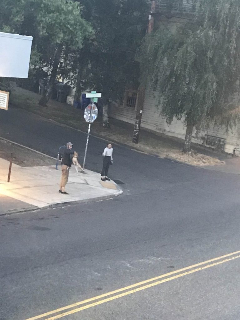 The incident occurred near a food cart on SE 27th Avenue and SE Belmont St. at about 9 pm on Saturday, July 15. The man involved in the incident is about 6 feet tall and was seen wearing a gray conductor cap, black shirt, tan pants, and black Vans shoes. He was seen with a female companion.