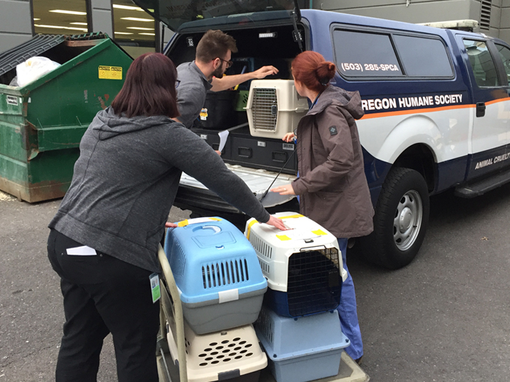 Working in partnership with the Columbia County Sheriff’s Office, OHS Humane Investigations staff seized 17 pets, suspected of being neglected, from a Columbia County home on Wednesday, March 7. The pets include seven dogs, six cats and four kittens. All the animals will receive a medical exam and care at the OHS Holman Medical Center.