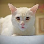 Swan’s perfect white coat and gleaming gold eyes hide a painful past of trauma and neglect. But it’s his transformation, from a cat who was clinging to life to an elegant feline, that earned him the name “Swan.”
