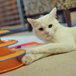 It took many months, but slowly Swan started to blossom. He gained weight, began purring and seeking affection. It was like he was waking up from a terrible nightmare. After almost six months, Swan began to use the litter box regularly. Now, Swan can walk, get in and out of the litter box, and play with toys.