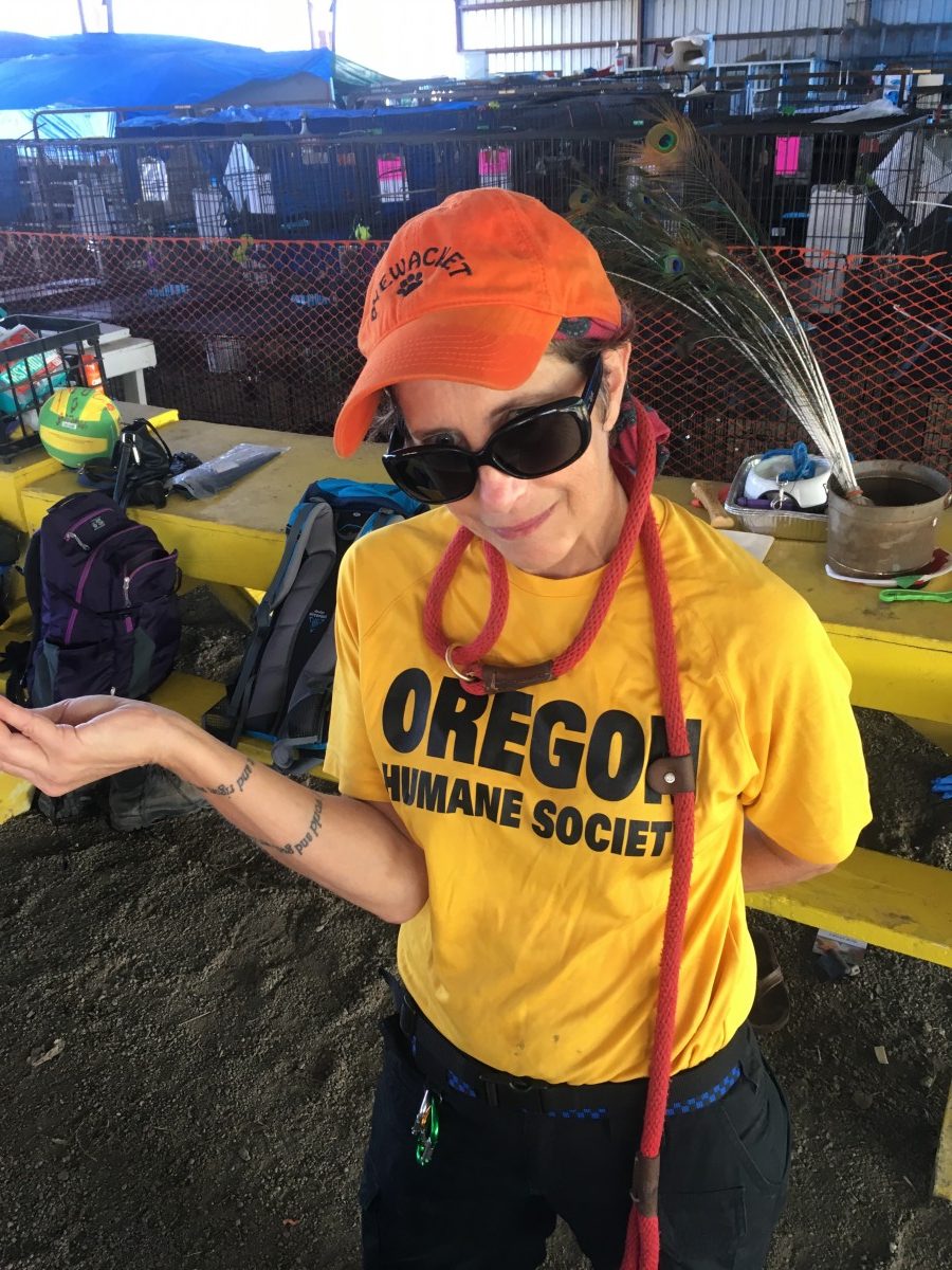 When asked about the types of things she does at OHS, she says “if there’s a dog involved I have probably done it, am doing it now, or hope to do it in the future.” When she first started at OHS she joined the Saturday morning walking team. She then expanded her work to the Kennel Buddies and Pet Pals program – both programs help dogs who are shy or need extra help with behavior challenges. She also helps with intake of dogs through the Second Chance Program, even washing the dozens of dirty crates that the dogs arrive in each week. Cecil recently became the teamleader of the OHS Technical Animal Rescue Team and has put her rescue skills to work in hurricane ravaged St. Croix. She has also worked at emergency animal shelters in North Carolina and Ohio. “Whew – amazing I find time to do my “real” job,” she jokes when she reflects on all the time she spends volunteering.