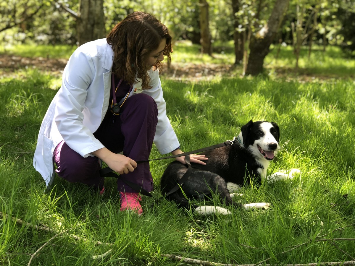 As OSU vet student Caity Baxter Rath packed her bags on April 27 after her three-week clinical rotation at the Oregon Humane Society, she was sure to include an important keepsake. An adoption contract, a large file of medical records and a happy young border collie named Vlad were heading home with Caity to join her family. Vlad, renamed Freddie Mercury, would join furry sibling David Bowie, Caity and her husband in their home in Battle Ground.